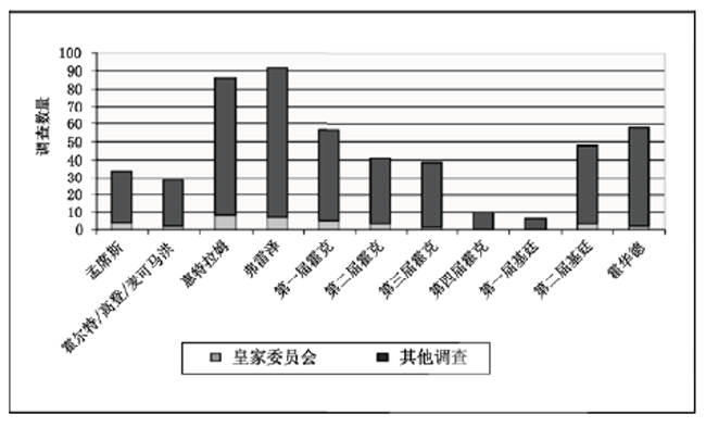 图1 1949―2003 年澳大利亚历届政府的皇家委员会和公共调查数量