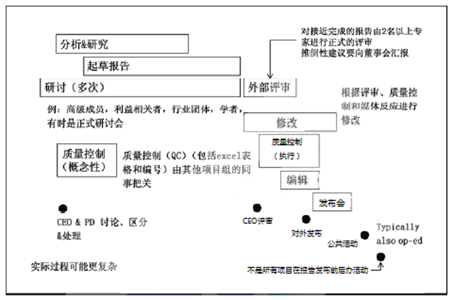 格拉坦研究所建立了规范的研究流程和管理体系,体现在以下几个方面:一是规范严谨的研究思路和流程。格拉坦研究所提出选题的三项重要标准:重要性、可操作性和价值。对立法完善、管理规范的领域不再研究,没有比较优势的领域也不涉入。研究所把该机构研究流程定义为:通盘处理、分析研究、充分沟通、产生影响。严谨性是研究所的重要理念,为达成此目标,研究所的研究成果校验须经历以下步骤:交由不同的组别进行交叉检验关键的数据表格;高级主管的内部评审;进行大量的外部评审;选择2名外部匿名评审,推倒性意见要提交董事会。