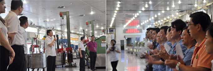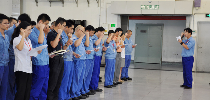 最后工段长带领全体员工进行7S宣誓!现场气氛热烈,大家信心满满,接下来,硕智现场管理专家团队和中钞油墨的团队共同打造一流的管理现场!