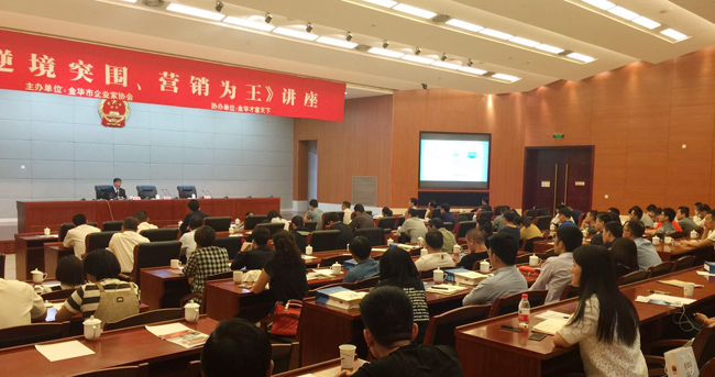 2016年5月18日,由金华企业家协会主办的“逆境突围、营销为王”的讲座在金华市文化中心召开,我司资深合伙人、总经理黄楠先生以及常务副总裁张虹博士应邀参加了本次讲座。