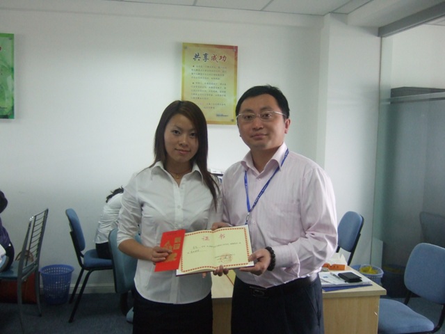 今天,阳光格外灿烂耀眼,对于硕智公司的全体员工来说是一个非常特别的日子。硕智总经理黄文平先生、副总经理蔡永青先生在公司晨会上为项目发展部、培训部的获奖人员颁发了“4月份最佳奖”、“第一季度最佳奖”及“最佳进步奖”等奖项。此次两个部门共有6人次获此殊荣。公司全体伙伴们纷纷为获奖者鼓掌欢呼,真心的为他们骄傲、祝福!“真诚的为别人的成功鼓掌祝福,也是在为自己的成功加油!”