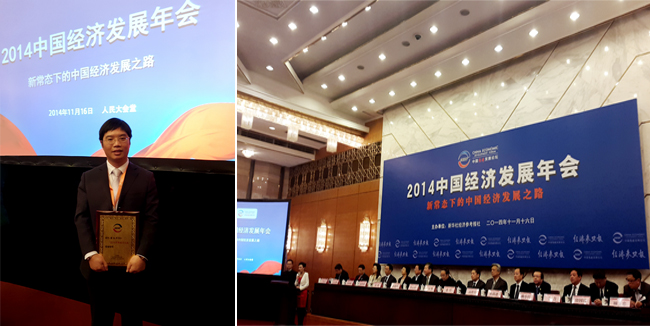 2014年11月16-17日,由新华社主办的“2014中国经济发展论坛”在北京人民大会堂隆重举行,十届全国人大常委会副委员长蒋正华、中国社会科学院副院长蔡眆、中国人大外事委员会委员、新华社副社长路建平、国务院发展研究中心副主任侯云春、商务部流通业发展司司长向欣、国务院国资委研究中心副主任卢永真等领导出席论坛,与会的领导和来自学界、商界的经济专家就“新常态下的中国经济发展之路”专题发表演讲。人民日报、新华社、中央电视台、经济日报、新华网等媒体对论坛进行了采访和报道。